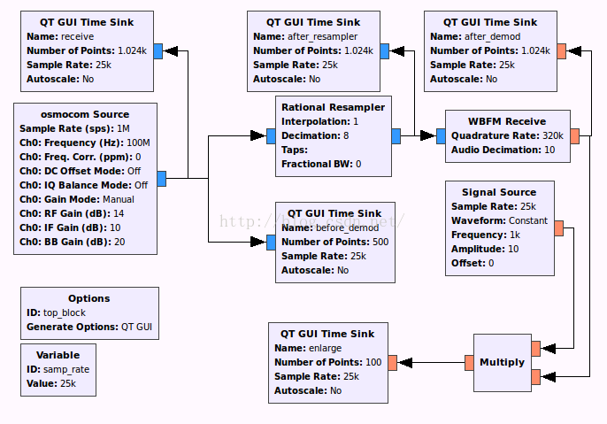 2、根据HackRF接收到的FSK信号, 在GRC平台下进行解调;