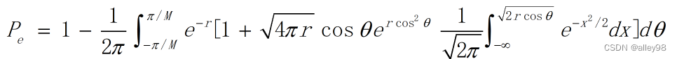 上述关于误码率的公式涉及积分,比较复杂,因此在实际应用中,当M足够大时,MPSK误码率公式可以近似写为: