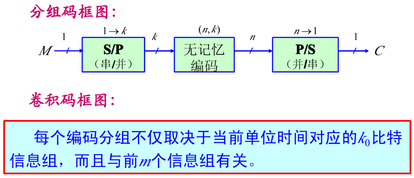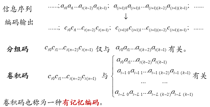 卷积码与分组码的不同特点: