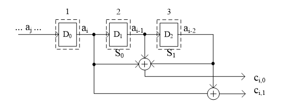 卷积码编码器的结构: