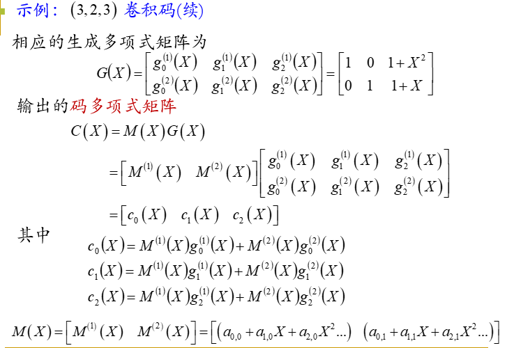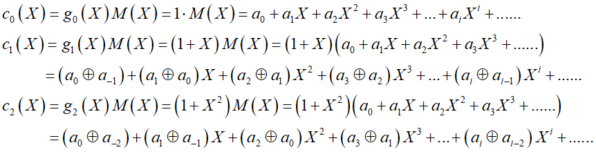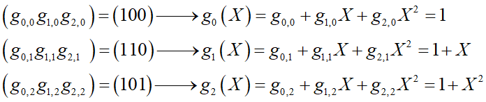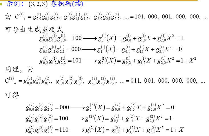 如对前面讨论的卷积码,可定义每一位编码输出的生成多项式
