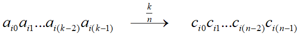 每输入 k 比特信息码组,输出一个 n 比特的码字