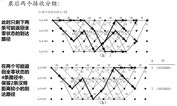 可以推测:码重最小的路径一定在离开全零状态,又回到全零路径后,沿着全零路径到编码结束的所有路径中,码重最小的路径。