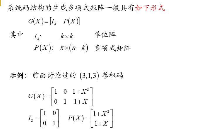 所谓系统码结构的卷积码与系统码结构分组码类似编码输出具有如下的结构