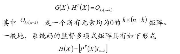 监督多项式矩阵与生成多项式矩阵应满足如下的关系
