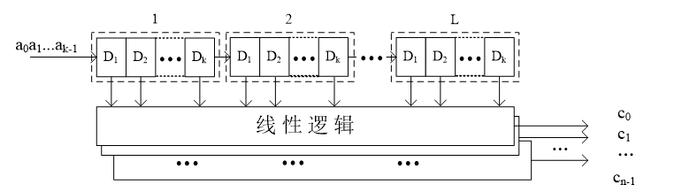 若每个输入信息码组,会影响L个编码输出的码字,则称该卷积码的约束长度为L,相应地,该卷积码记为(n,k,L)