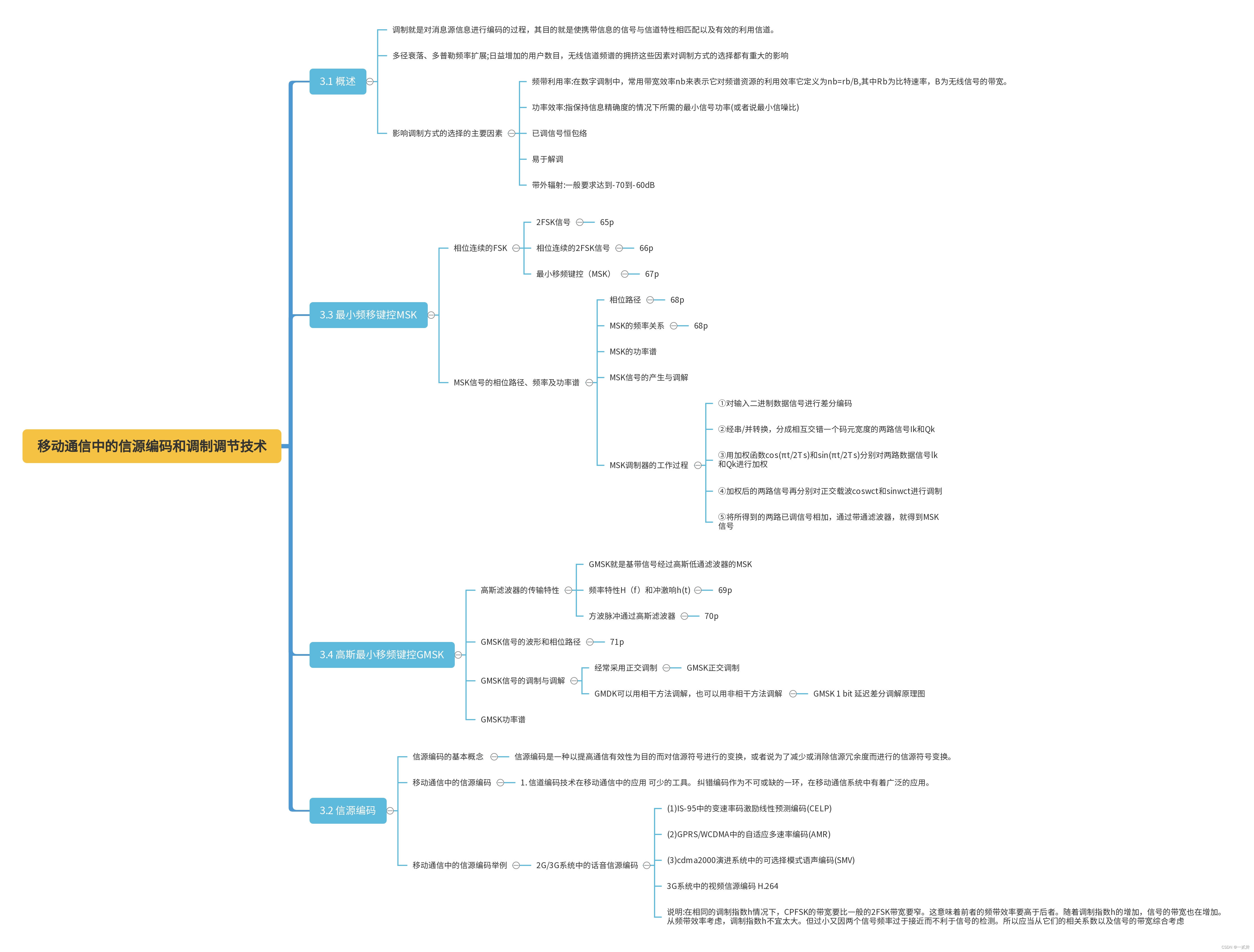 移动通信中的信源编码和调制调节技术的思维导图