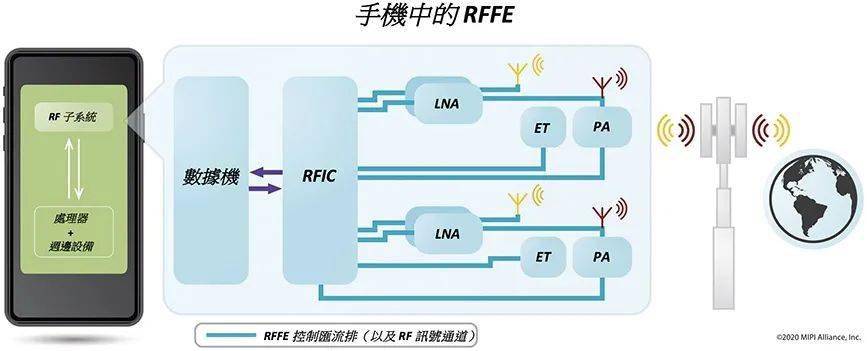 对5G而言,几乎没有什么比RF前端(RFFE)控制基础架构更为重要。任何影片数据、任何应用程序数据(基本上以无线方式传输或接收的任何内容皆然)都仰赖RFFE来控制RF前端模块(FEM)或子系统,包含所有功率放大器、天线调谐器、滤波器、低噪声放大器(LNA)、交换器等等,这些子系统均链接至调制解调器基频和/或射频集成电路(RFIC)收发机。
