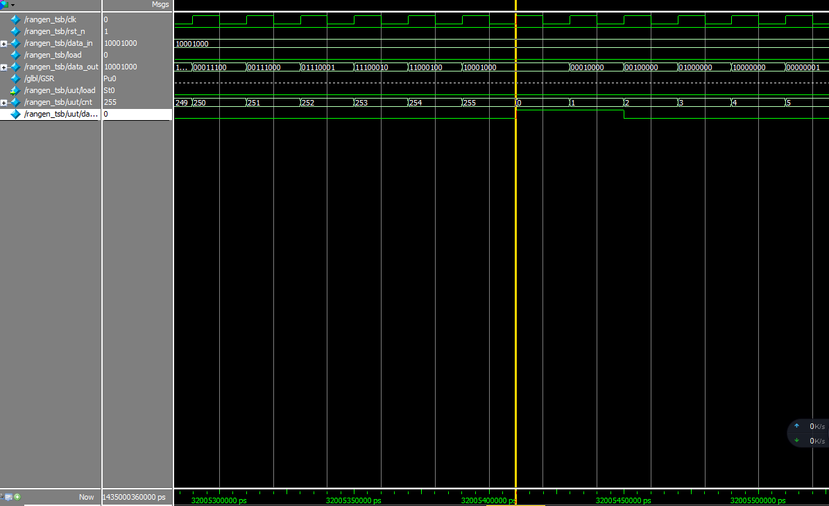 仿真截图:初始值为10001000,周期为 255 ,在cnt计数到255是输出10001000;
