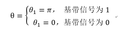 相位调制技术即通过外调制器对光信号增加相位位移来进行的调制,利用光信号的相位变化来传递信息,其主要包括两个方面,一是多电平相位调制(multilevel phase-shift keying, mPSK),相移键控是以载波的初始相位变化来表示基带信号,分别用初始相位0和pi来表示基带信号0和1,即: