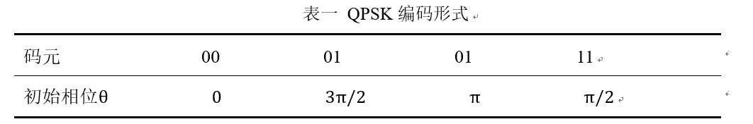 例如正交相移键控(quadrature phase shift keying, QPSK),其相邻码元的载波相位相差π/2 ,其原理与2PSK类似,先将基带信号原始的二进制序列分为2bit一组,会有四种不同的状态,从而变成四进制形式,然后用载波的四个初始相位来表示不同的四进制代码,具体定义如下表所示:、