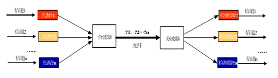 WDM系统基本由五部分组成,即光发射部分、光接收部分、光传输部分、光监控部分和网络管理部分。WDM的关键技术包括三个方面:合/分波器、光放大器和光源器件。合/分波器实际上就是光学滤波器,其作用是对各复用光通路信号进行复用与解复用。对他们的基本要求是:插入损耗低、隔离度高、具有良好的带通特性、温度稳定性好、复用通路多以及具有较高的分辨率等。