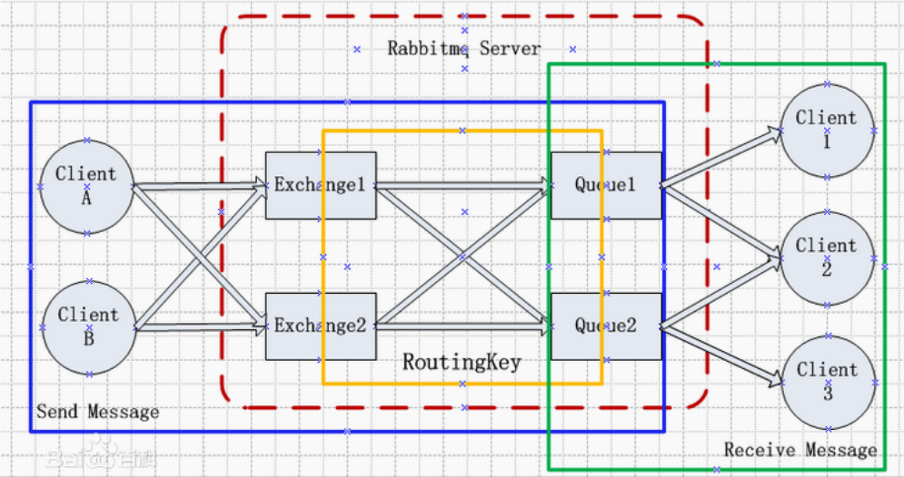 消息提供方->路由->一至多个队列消息发布到交换器时,消息将拥有一个路由键(routing key),在消息创建时设定。通过队列路由键,可以把队列绑定到交换器上。消息到达交换器后,RabbitMQ 会将消息的路由键与队列的路由键进行匹配(针对不同的交换器有不同的路由规则)。