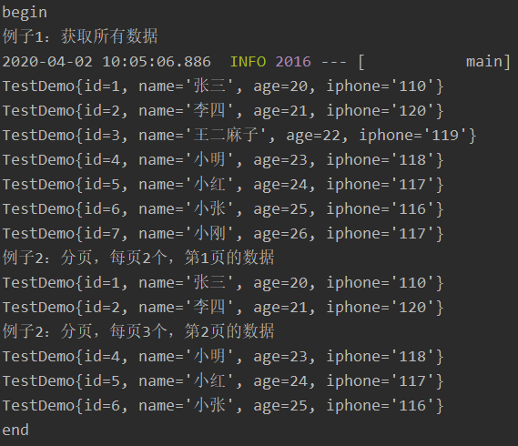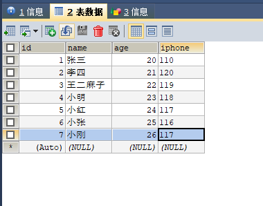 insert into `test_demo`(`id`,`name`,`age`,`iphone`) values (1,'张三',20,'110'),(2,'李四',21,'120'),(3,'王二麻子',22,'119'),(4,'小明',23,'118'),(5,'小红',24,'117'),(6,'小张',25,'116'),(7,'小刚',26,'117');