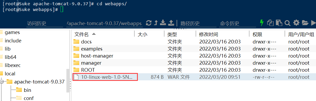 (5)将生成的war包通过外连工具上传到linux中tomcat服务器的weapps目录下