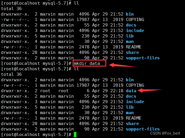 需要注意的是datadir参数,这里自己指定了data目录,data目录是不存在的需要我们手动创建