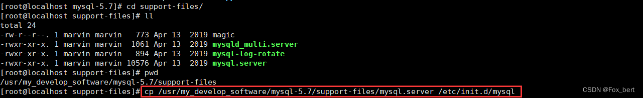 cp /usr/my_develop_software/mysql-5.7/support-files/mysql.server /etc/init.d/mysql