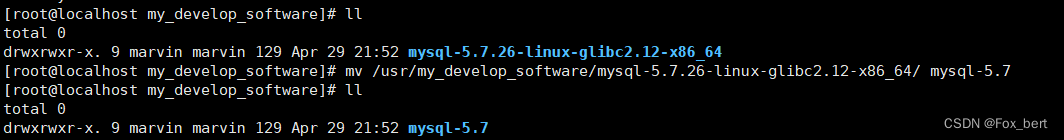 mv /usr/my_develop_software/mysql-5.7.26-linux-glibc2.12-x86_64/ mysql-5.7
