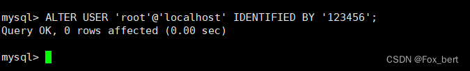 ALTER USER 'root'@'localhost' IDENTIFIED BY '123456';