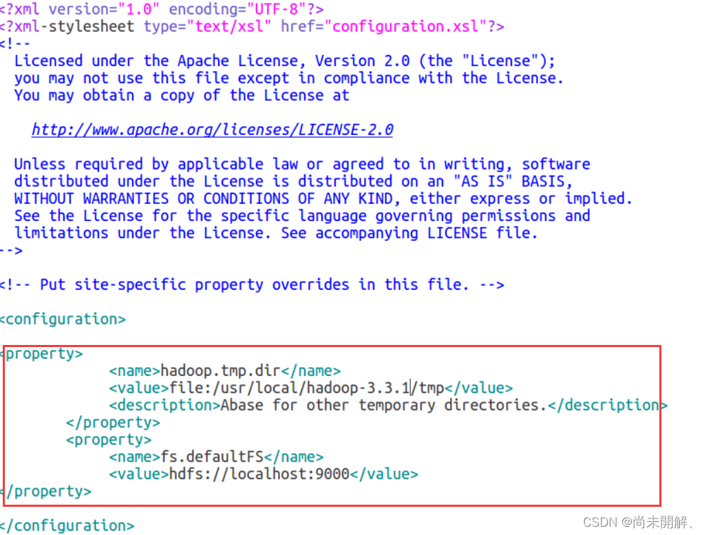 打开/etc中的core-site.xml 文件,加入如下语句并保存