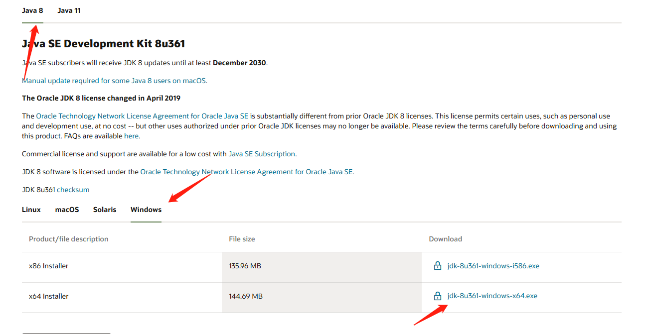 在第一天的学习中,我们首先安装最重要的JDK,这里可以去甲骨文官网下载(https://www.oracle.com/),有很多版本,这里博主建议安装JDK8或者11,原因是因为这两个版本甲骨文公司对其的支持时间是最长的,也是更稳定更有利于我们进行Java的学习和开发的。下面是安装流程: