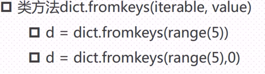 d = dict.fromkeys([6,7,8]) #根据序列,创建字典