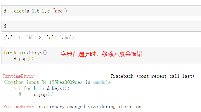 # 只能等遍历时,收集好对应的key或者是value,再做处理