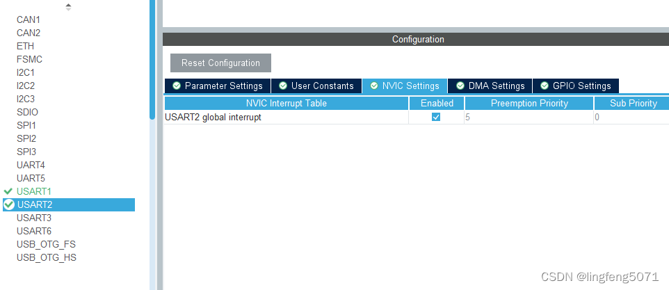 二、使能串口1作为printf打印调试信息,使能串口2作为485通讯,Enable中断