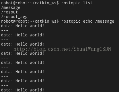7. 使用 rostopic 相关命令可以查看 生成的话题和输出话题信息: