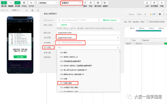 有其他特殊情况,比如扫描小程序码,显示关注公众号按钮,测试环境就需要通过添加编译模式达到测试目的。如图: