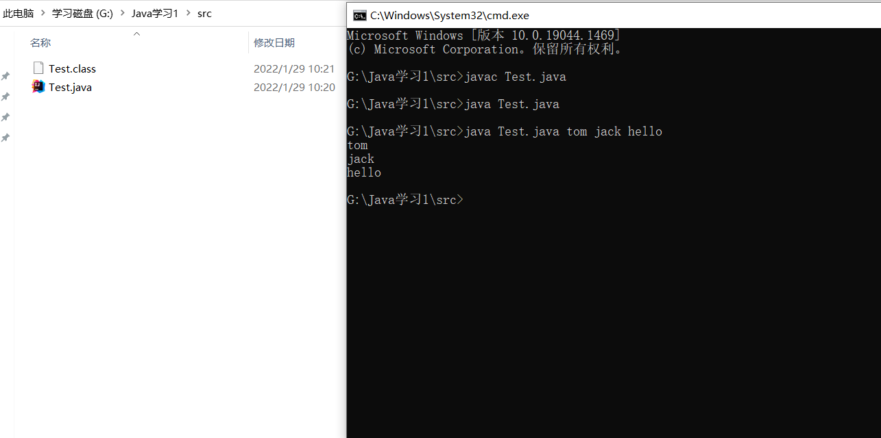- 该方法接受String类型的数组参数,该数组中保存执行Java命令时传递给所运行的类的参数(String[] args用来保存参数)。