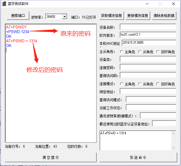 二、修改蓝牙模块密码
