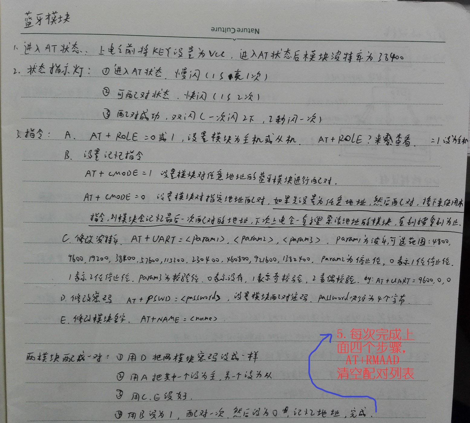 9, AT+PSWD?:查询设置配对密码,AT+PSWD=”0000”,密码要有双引号,密码是四位数字.
