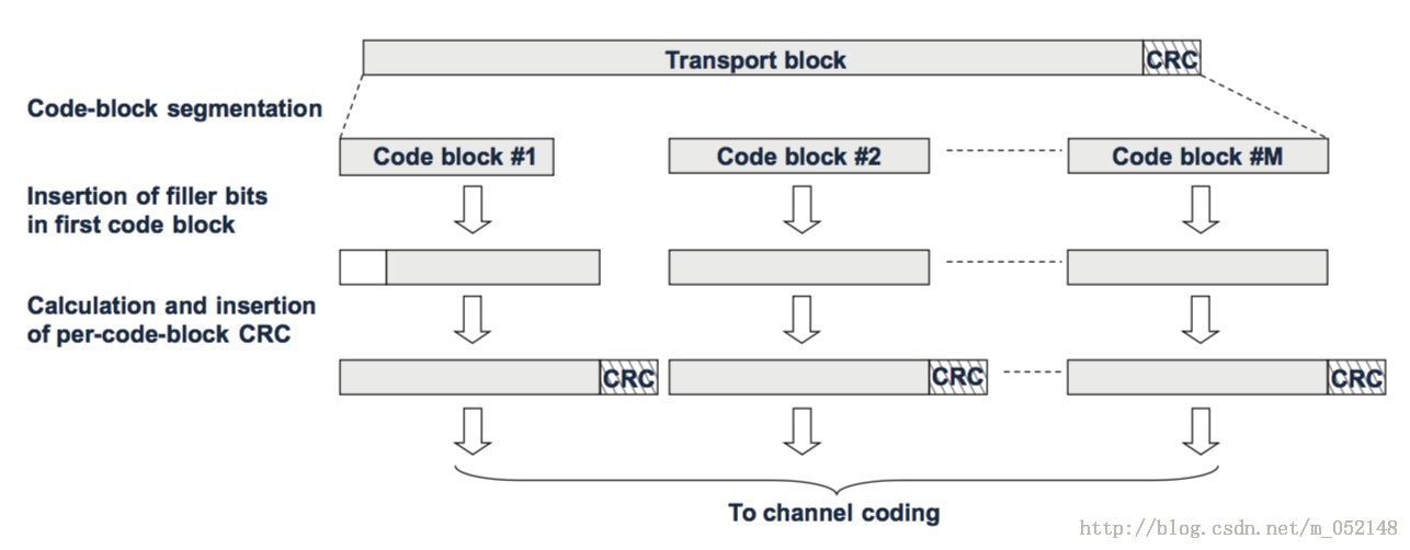 图1中第一个CB块的开头有一小段空白的区域,这个区域叫做填充比特。由于目前LTE协议中的TBS大小是经过选择的,所以并不需要使用填充比特。