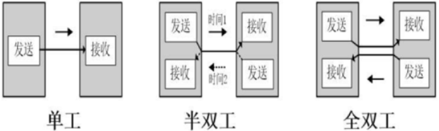 2)双向交替通信又称半双工通信,即通信双方都可以发送信息,但不能双方同时发送或同时接收,这种通信方式往往是一方发送另一方接收,如无线对讲机系统。