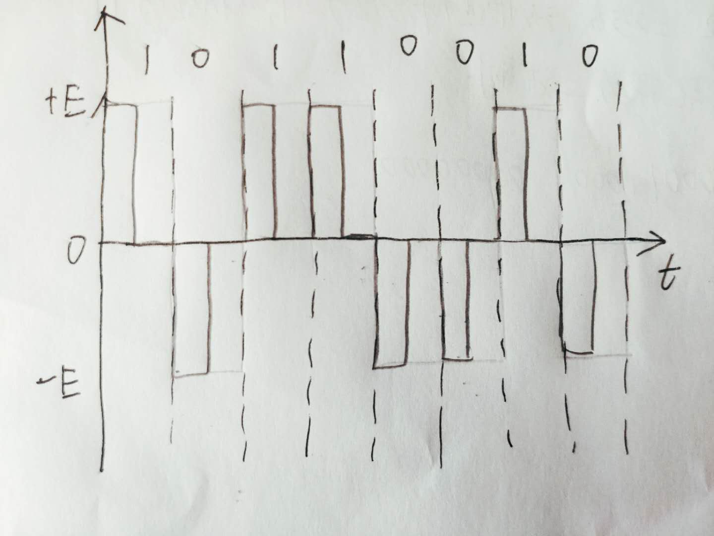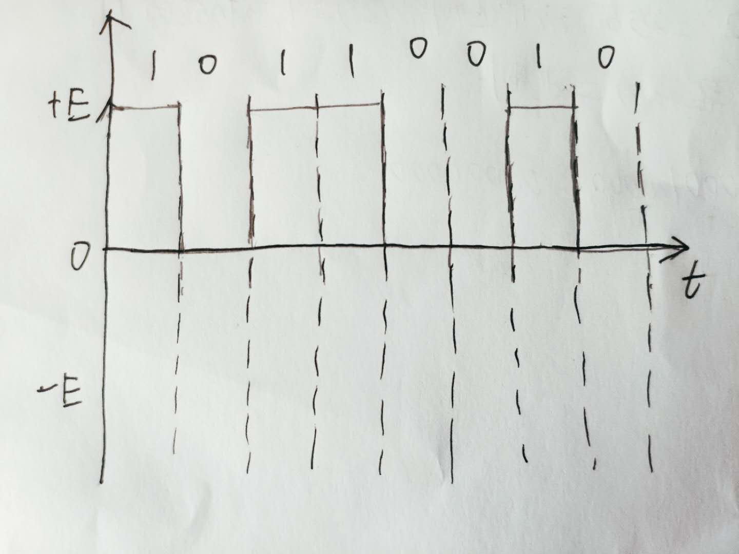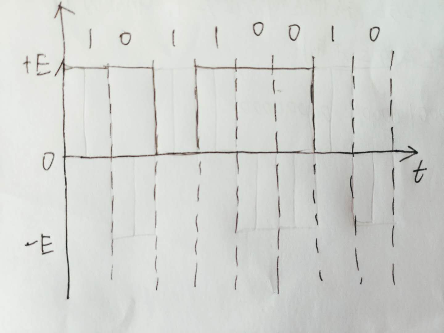 8.假设信息码为二进制符号序列10110010,请分别画出对应的单极非归零码(单极不归零)、双极归零码、差分码的信号波形。P226