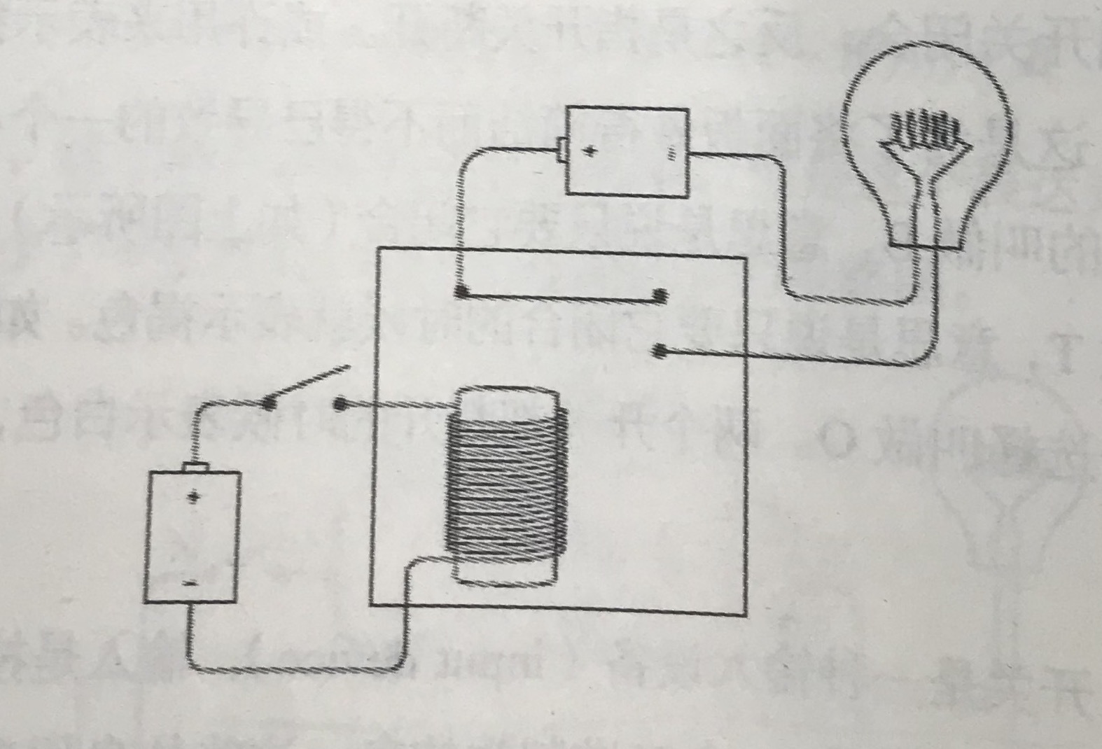 一个电磁铁是两个电路有了关联,开关闭合,灯泡亮。