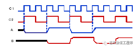 但是,如果在数据A翻转和时钟C2的边沿之间有足够的时间,则在C2的第一个周期捕获数据。因此,源时钟域数据和目标时钟域数据之间可能不会一一对应。无论如何,一般情况下源数据上的每个翻转都应该在目标时钟域中被捕获。