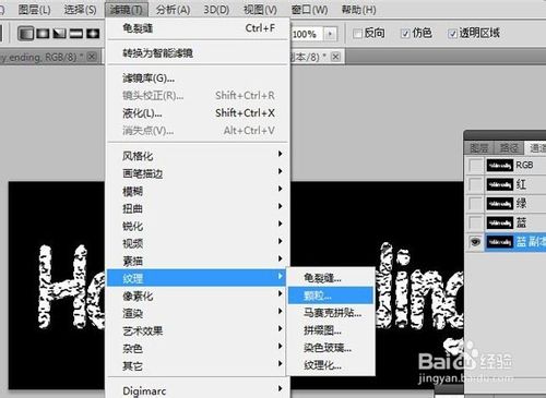 5、按ctrl点击蓝色通道副本,扔选择“滤镜”——“纹理”——“颗粒”,打开后同样设置下数值,其中颗粒类型为垂直,如下图: