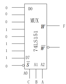 1.这里讲解一个特殊情况,如果给定的函数是F(A,B,C,D)拥有四个变量,要求我们采用74151八选一数据选择器来实现四变量的函数。74151八选一数据选择器的地址端只有三个,和四个变量对不上,该怎么解决这个问题。这里的解决办法有两种:74151八选一数据选择器增加一个地址端;降变量,把表达式的四变量改为三变量。(卡诺图降位)