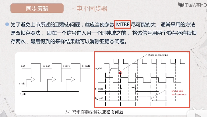 异步系统中,当违反建立和保持时间时,会输出介于两个有效状态之间的中间级电平。
