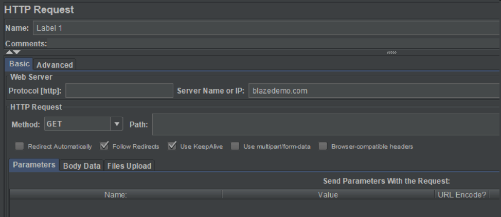 接下来,将每个采样器配置为只需点击 blazedemo.com: