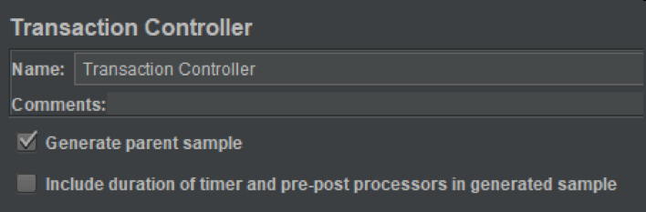 对于我们的第一个实验,我们将设置我们的事务控制器,以便通过确保“生成父样本”框未选中(禁用)来生成任何父样本: