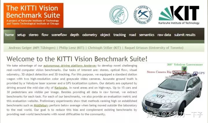 KITTI Vision Benchmark Suite(地址:http://www.cvlibs.net/datasets/kitti/raw_data.php) - 数据集为使用各种传感器模式,例如高分辨率彩色和灰度立体相机,Velodyne 3D激光扫描仪和高精度GPS/IMU惯性导航系统,在10-100 Hz下进行6小时拍摄的交通场景。