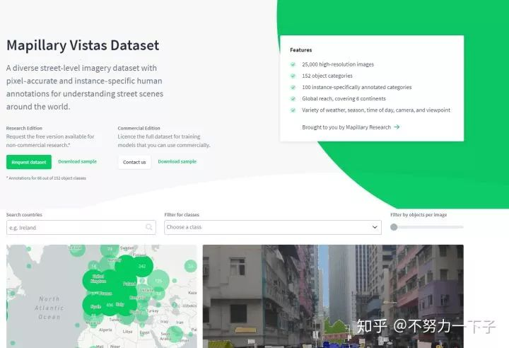 Mapillary Vistas Dataset(地址:https://www.mapillary.com/dataset/vistas?pKey=xyW6a0ZmrJtjLw2iJ71Oqg&lat=20&lng=0&z=1.5) -数据集是一个新颖的大规模街道级图像数据集,包含25,000个高分辨率图像,注释为66个对象类别,另有37个类别的特定于实例的标签。通过使用多边形来描绘单个对象,以精细和细粒度的样式执行注释。