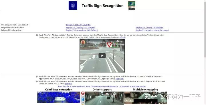 KUL Belgium Traffic Sign Dataset(地址:http://www.vision.ee.ethz.ch/~timofter/traffic_signs/) - 具有10000多个交通标志注释的大型数据集,数千个物理上不同的交通标志。用8个高分辨率摄像头录制的4个视频序列安装在一辆面包车上,总计超过3个小时,带有交通标志注释,摄像机校准和姿势。大约16000张背景图片。这些材料通过GeoAutomation在比利时,佛兰德斯地区的城市环境中捕获。