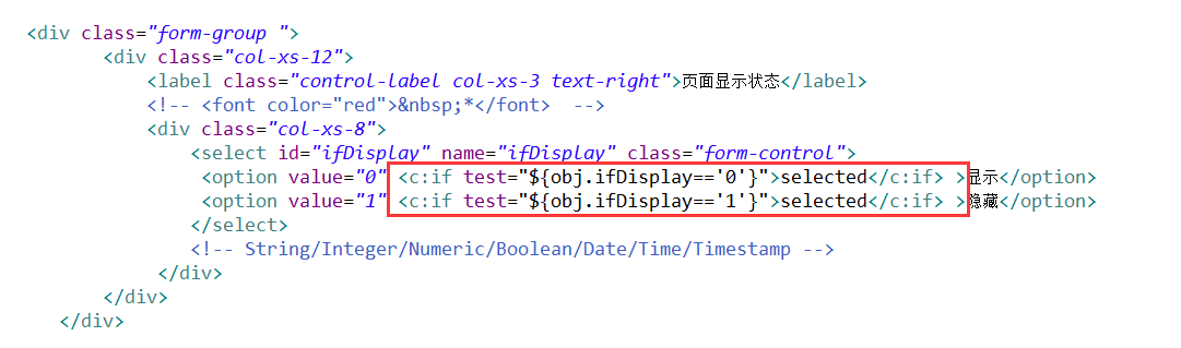 <c:if test="${obj.ifDisplay!='0'}">隐藏</c:if>