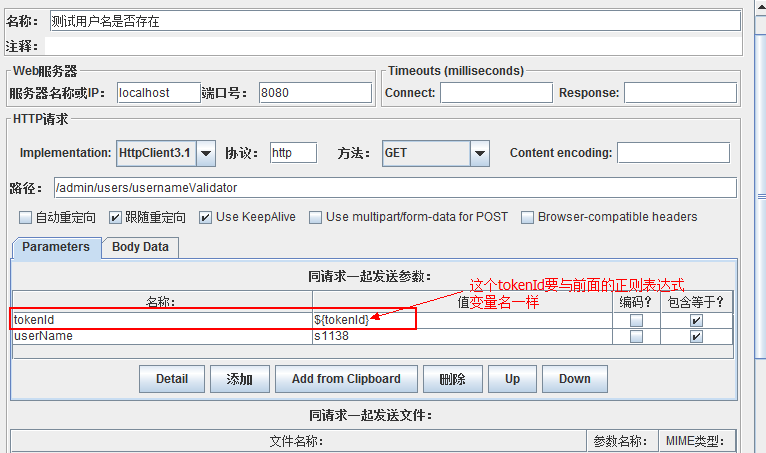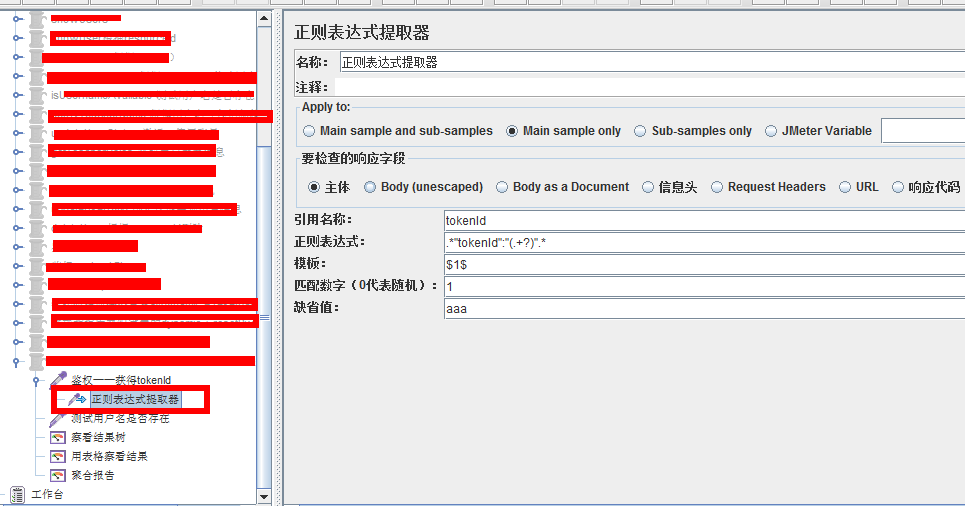 后置处理器是当这个请求返回后要做得事情,我这里是要从返回的内容中将我们要的tokenId获取出来。这里使用“