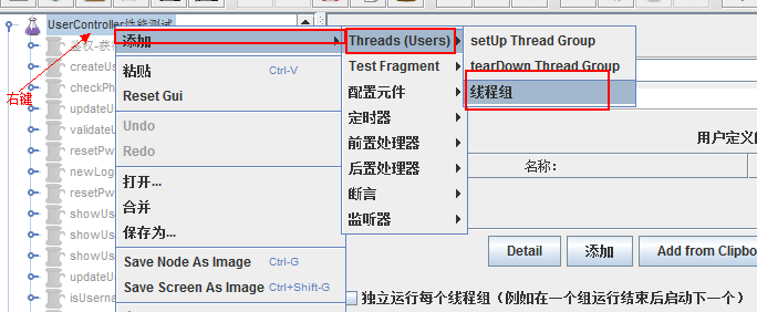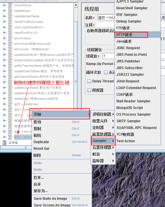 同上2)、添加一个http请求(线程租右键——》添加——》Sampler——》HTTP请求)