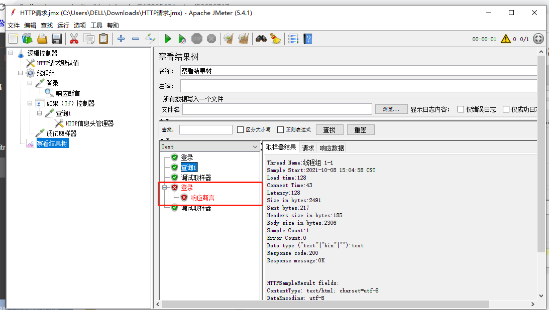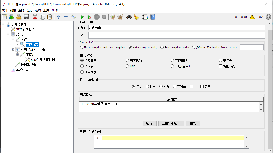 在上一个请求中,加入响应断言: